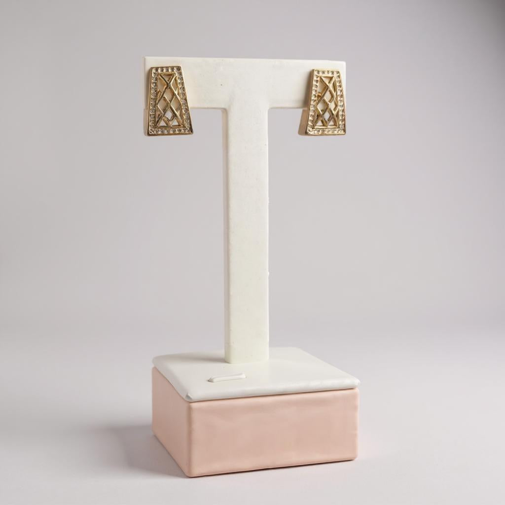 Our ALUNA Earrings feature a geometric design in the center. The outer edges are embellished with rhinestones. Perfect for everyday use or a night out.