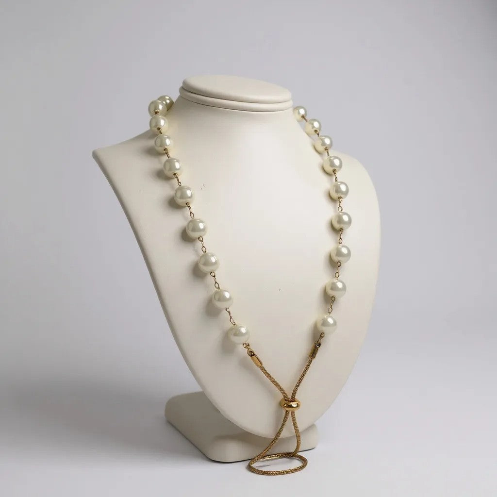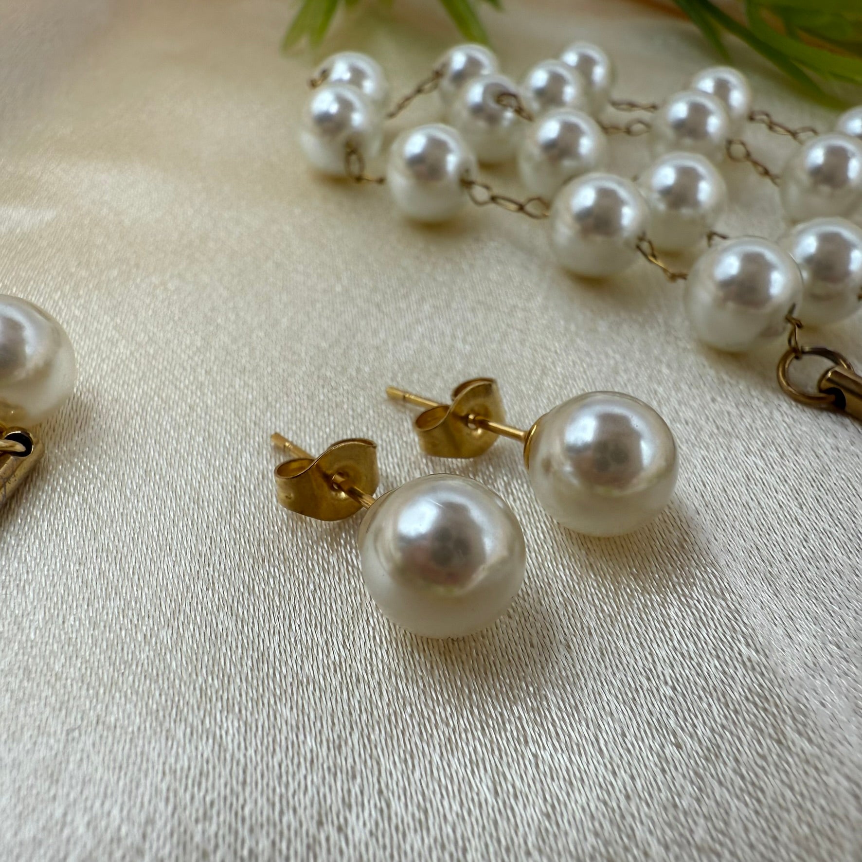 Our PERLA Earrings & Necklace set feature radiant pearls linked by a delicate gold chain, the necklace offers versatile styling, wear it as a refined choker or a graceful long necklace to suit any occasion. This adjustable design ensures a perfect fit, while the matching earrings add a timeless touch of sophistication to your look.