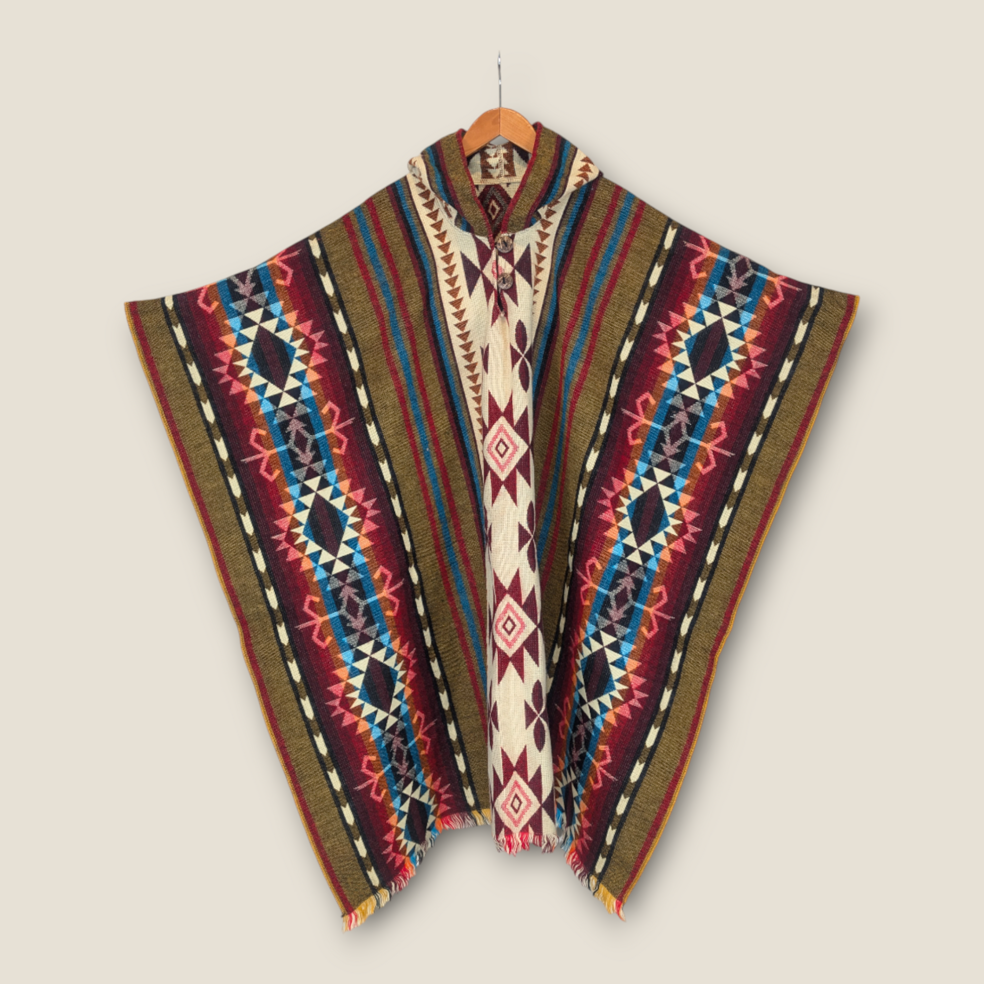 Handcrafted with care, every poncho is made from a soft, breathable blend of 50% alpaca wool and 50% cotton—designed to provide warmth without being heavy.