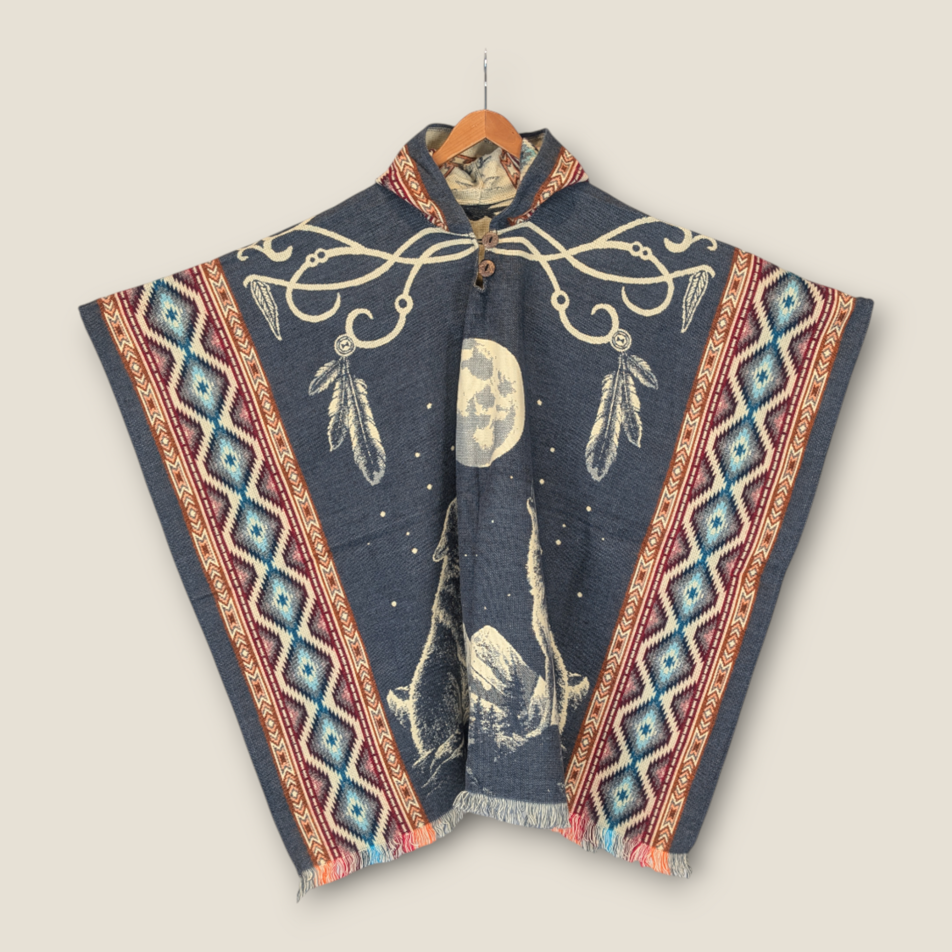 Handcrafted with care, every poncho is made from a soft, breathable blend of 50% alpaca wool and 50% cotton—designed to provide warmth without being heavy.