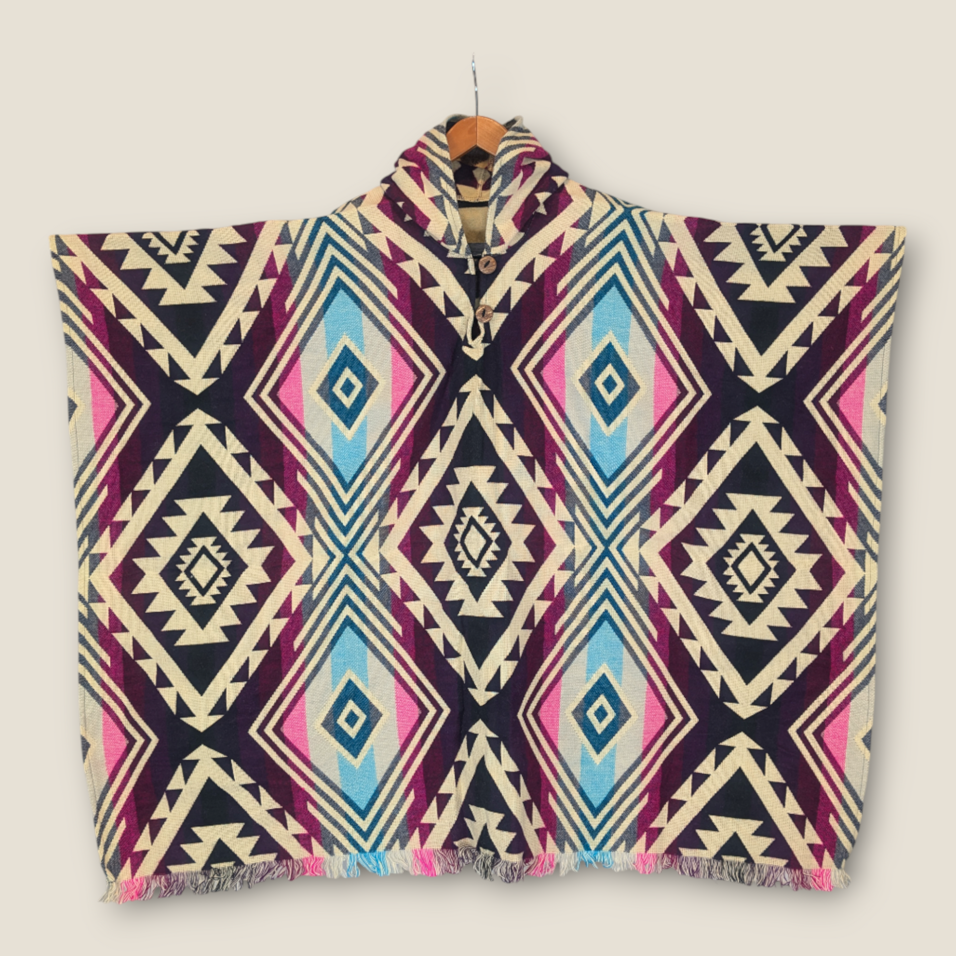 Handcrafted with care, every poncho is made from a soft, breathable blend of 50% alpaca wool and 50% cotton—designed to provide warmth without being heavy.