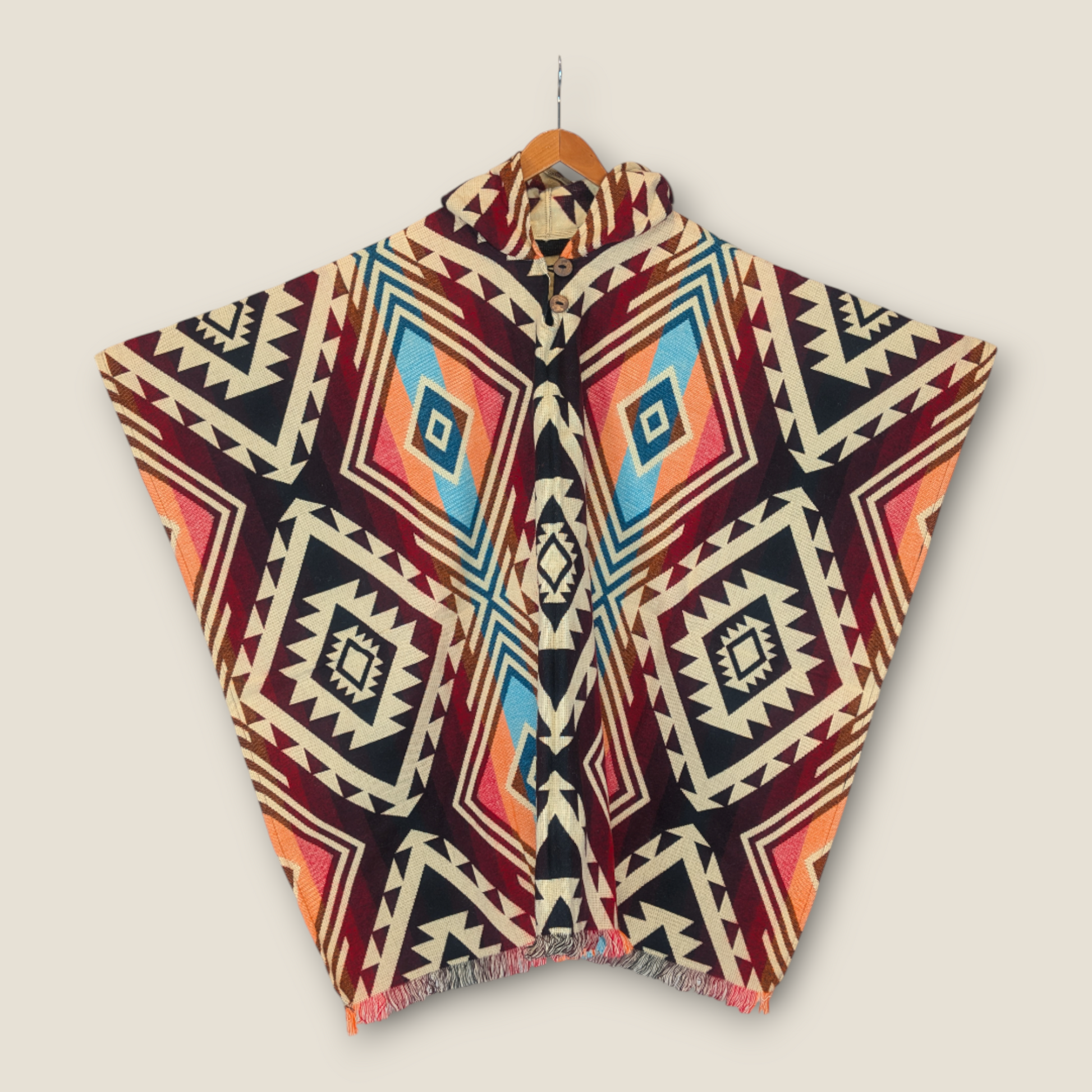 Handcrafted with care, every poncho is made from a soft, breathable blend of 50% alpaca wool and 50% cotton—designed to provide warmth without being heavy.