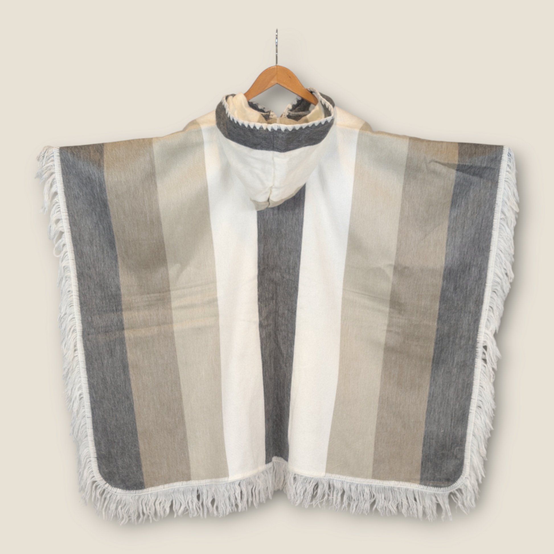 Handcrafted with care, every poncho is made from a soft, breathable blend of 50% alpaca wool and 50% cotton—designed to provide warmth without being heavy.