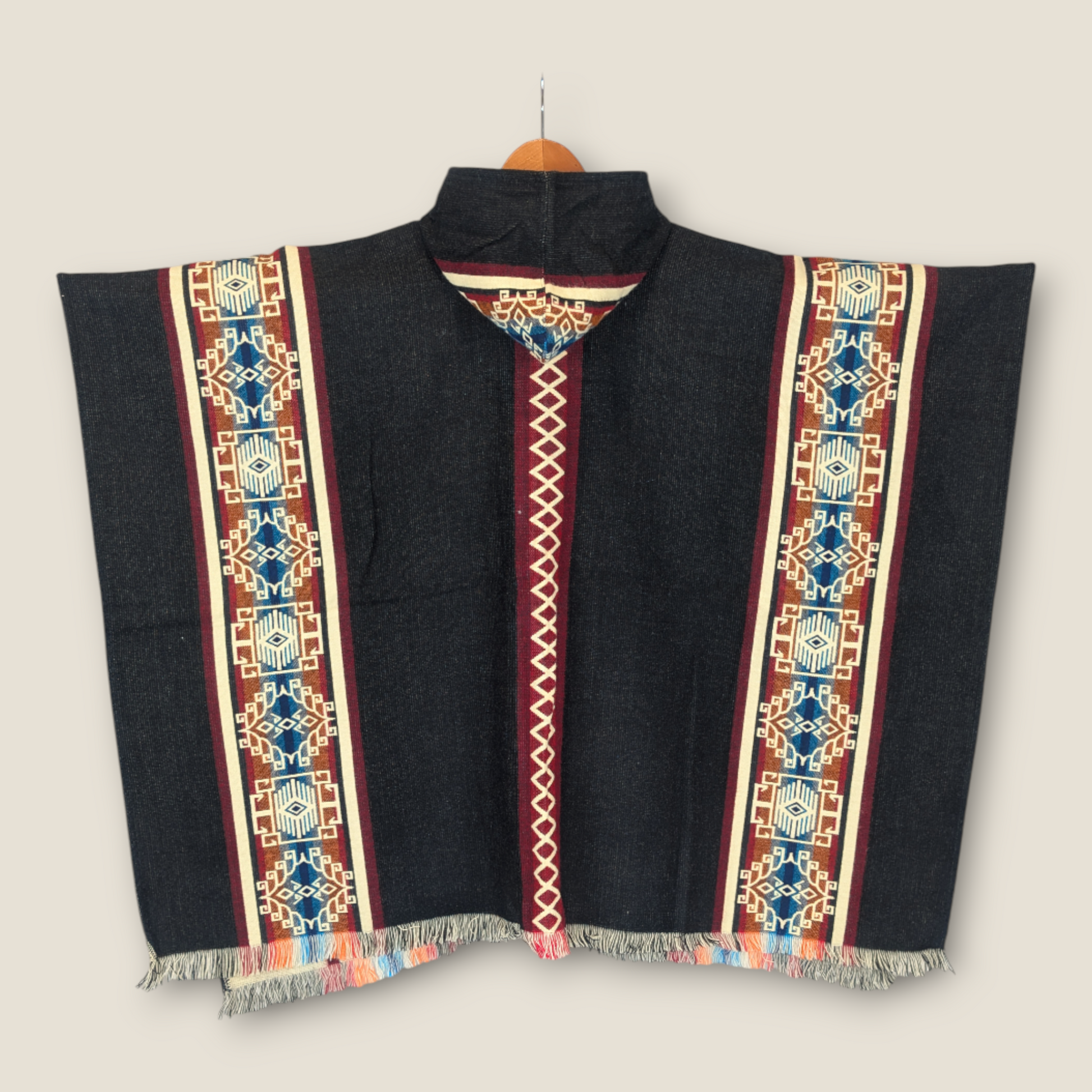 Handcrafted with care, every poncho is made from a soft, breathable blend of 50% alpaca wool and 50% cotton—designed to provide warmth without being heavy.
